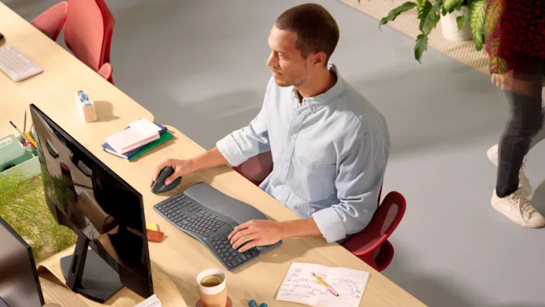 Mejore su comodidad y rendimiento con el teclado ergonómico dividido ERGO K860 y el mouse ergonómico avanzado vertical MX. Aprobado por ergonomistas, este dúo está diseñado para ayudarle a sentirse mejor y a rendir mejor.